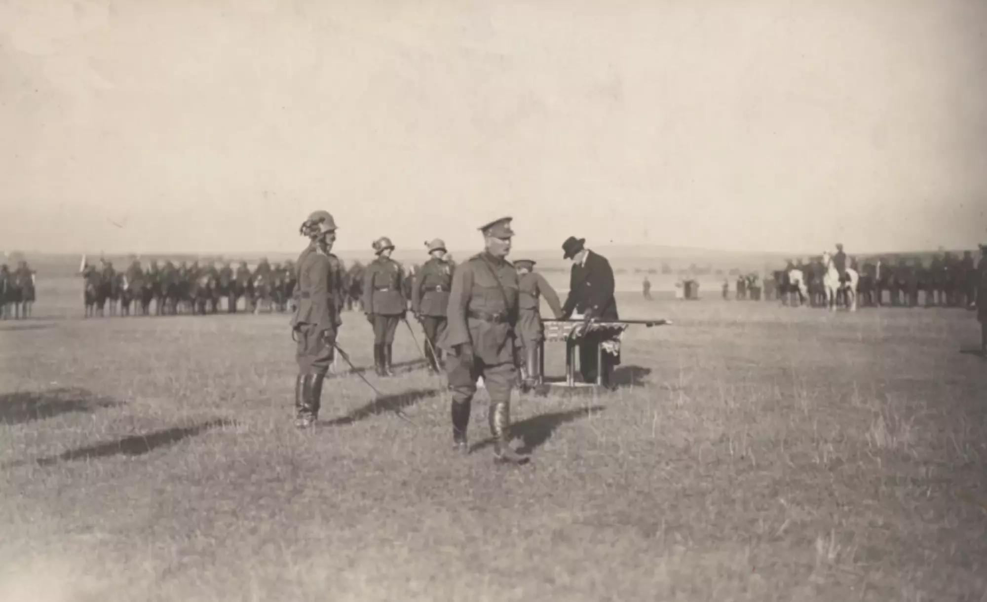Před přehlídkou se konalo slavnostní předání praporu 2. sibiřskému jízdnímu pluku; vrchní armádní velitel, zatloukaje první hřeb do žerdi praporu, pravil: „Nechť je druhý sibiřský jízdní pluk vždy pevnou oporou republiky!“ Poté zatloukli svoje hřeby ministerský předseda JUDr. Jan Černý, ministr zahraničí JUDr. Edvard Beneš, ministr železnic dr. Ing. Václav Burger (1859–1923) a další přítomní hodnostáři vojenští i civilní. Prezident i členové jeho družiny vepsali svoje jména do pamětní knihy pluku. Když prezident předával bojovou zástavu veliteli pluku plukovníku Jaroslavu Červinkovi (1848–1933), pronesl: „Plukovníku, odevzdávám druhému sibiřskému pluku tuto korouhev. Budiž vám znamením věrnosti a pocitu povinnosti!“ Nato připjal na stuhu praporu československý válečný kříž se slovy: „Zdobím vaši korouhev československým válečným křížem, který vláda udělila druhému jízdnímu sibiřskému pluku za jeho bojovou činnost v Rusku.“ Během přehlídky defilovala před prezidentem celá olomoucká posádka všech druhů zbraní a vzlétla tři vojenská letadla. (Cit. podle publikace R. Fischera Dr. T. G. Masaryk a Olomouc, Olomouc 1930, s. 24.)