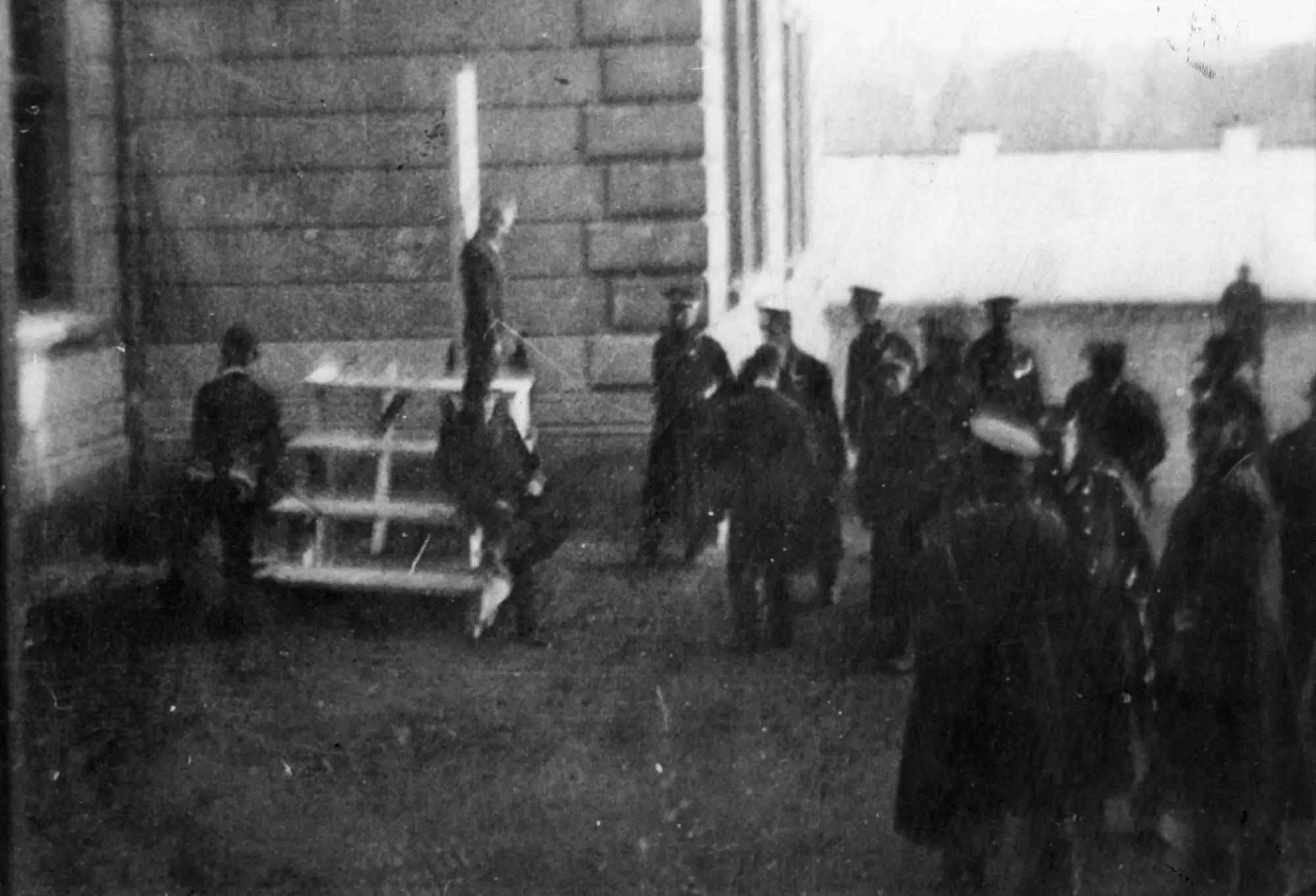 Amatérský snímek popravy Martina Leciána 6. října 1927 v olomoucké vojenské věznici.