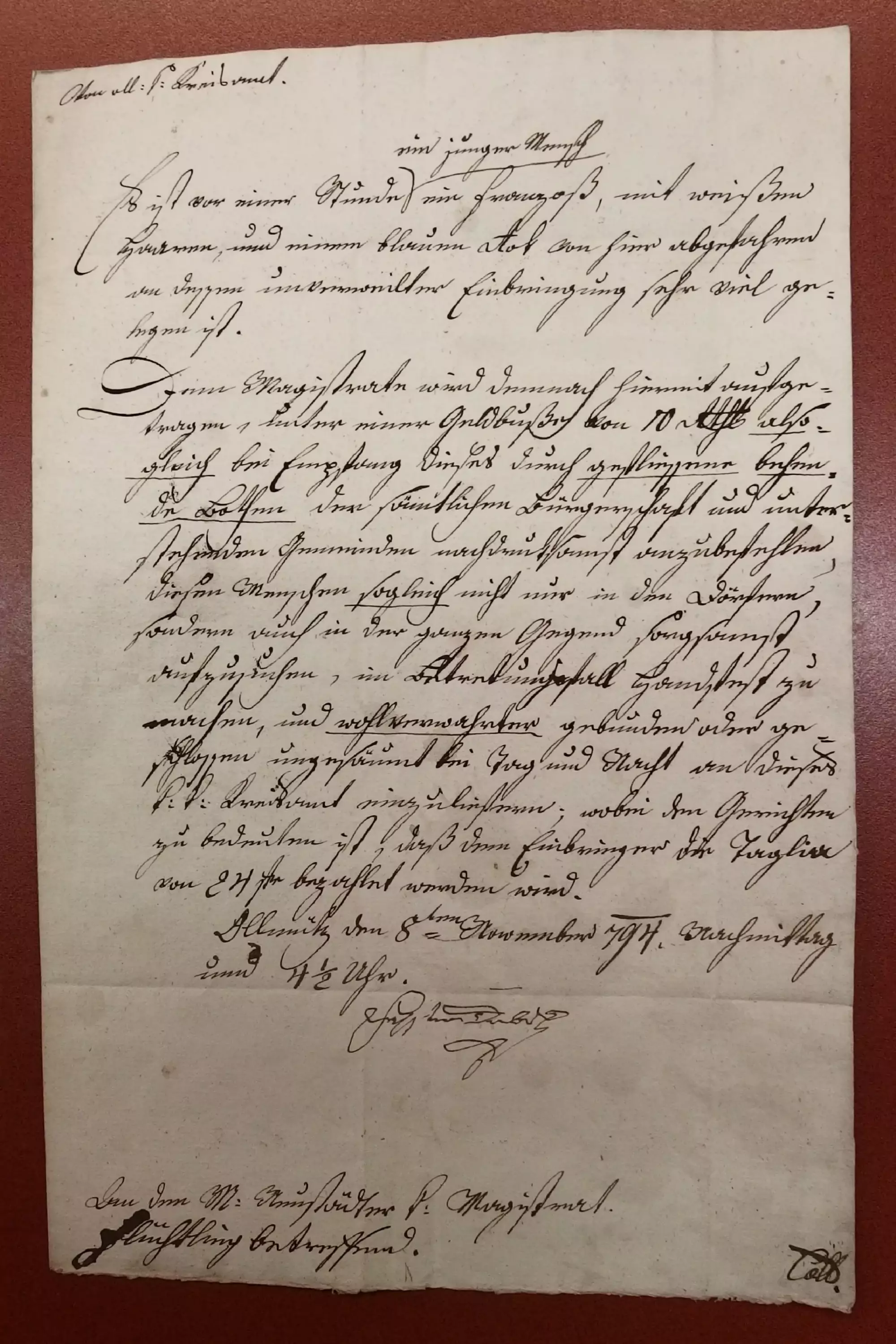 Olomouc 8. listopad 1794 odpoledne o 4½ hodině.
