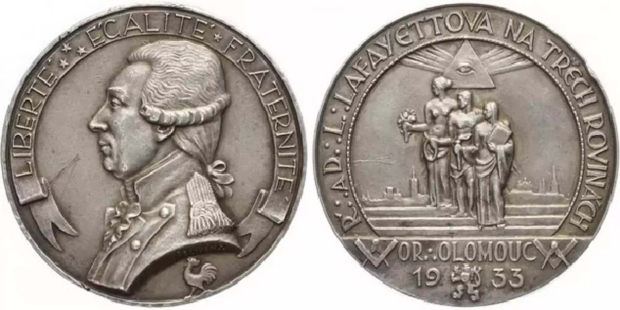![Julius Pelikán (1887–1969): „LIBERTÉ – ÉGALITÉ – FRATERNITÉ [Svoboda – Rovnost – Bratrství.] / Ř[ádná] A D[okonalá] L[óže] LAFAYETTOVA NA TŘECH ROVINÁCH, OR[ganizace] OLOMOUC 1933“ Pamětní medaile G. Lafayetta vydaná olomouckými svobodnými zednáři. Stříbro, 1933.](https://www.olomouc.eu/administrace/action/repository_foto.php?x=370&y=278&orez=1&file=gallery/articles/21_/21919/07-07_Lafayette_medaile1.webp)
