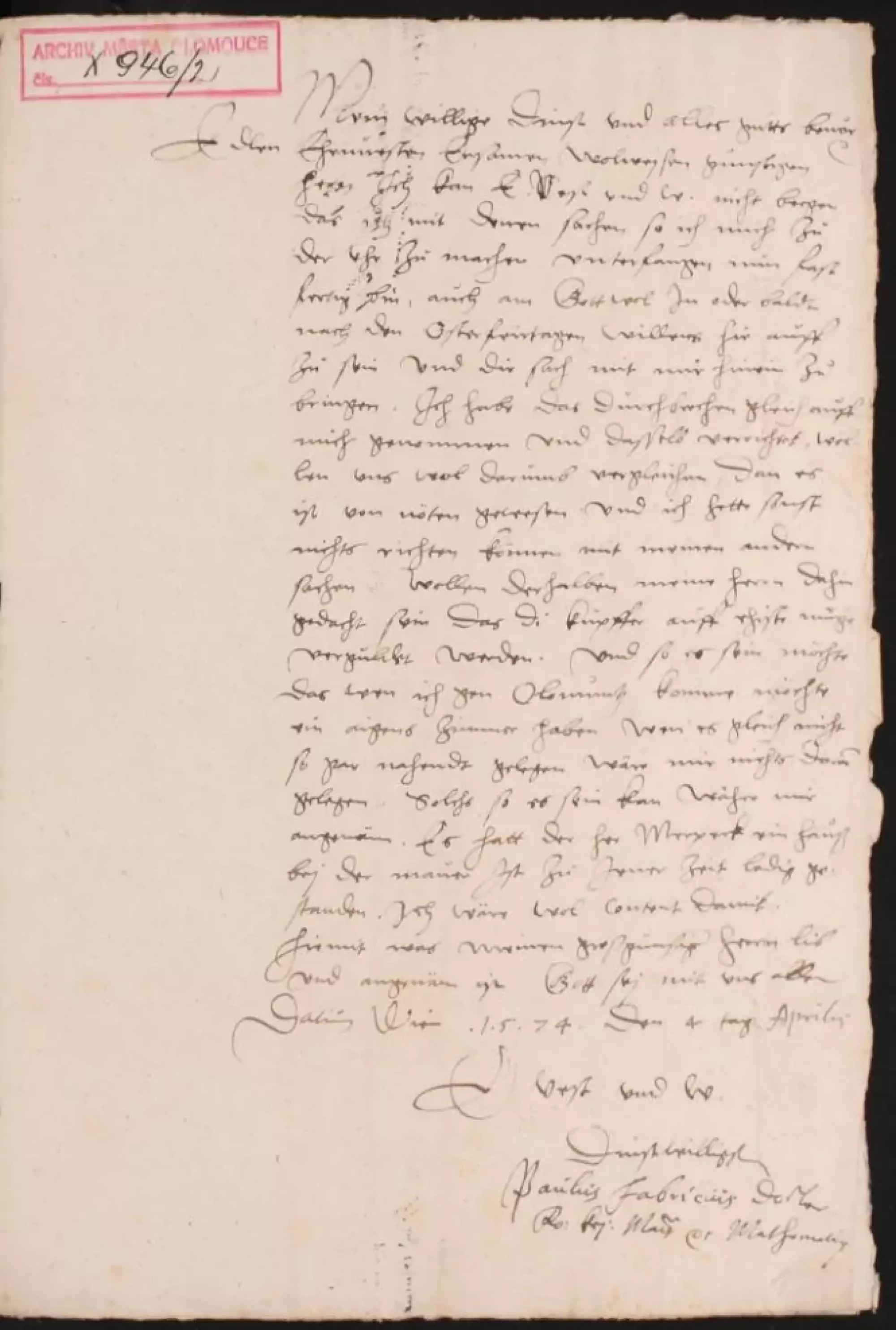 Dáno ve Vídni 4. dne dubna 1574.