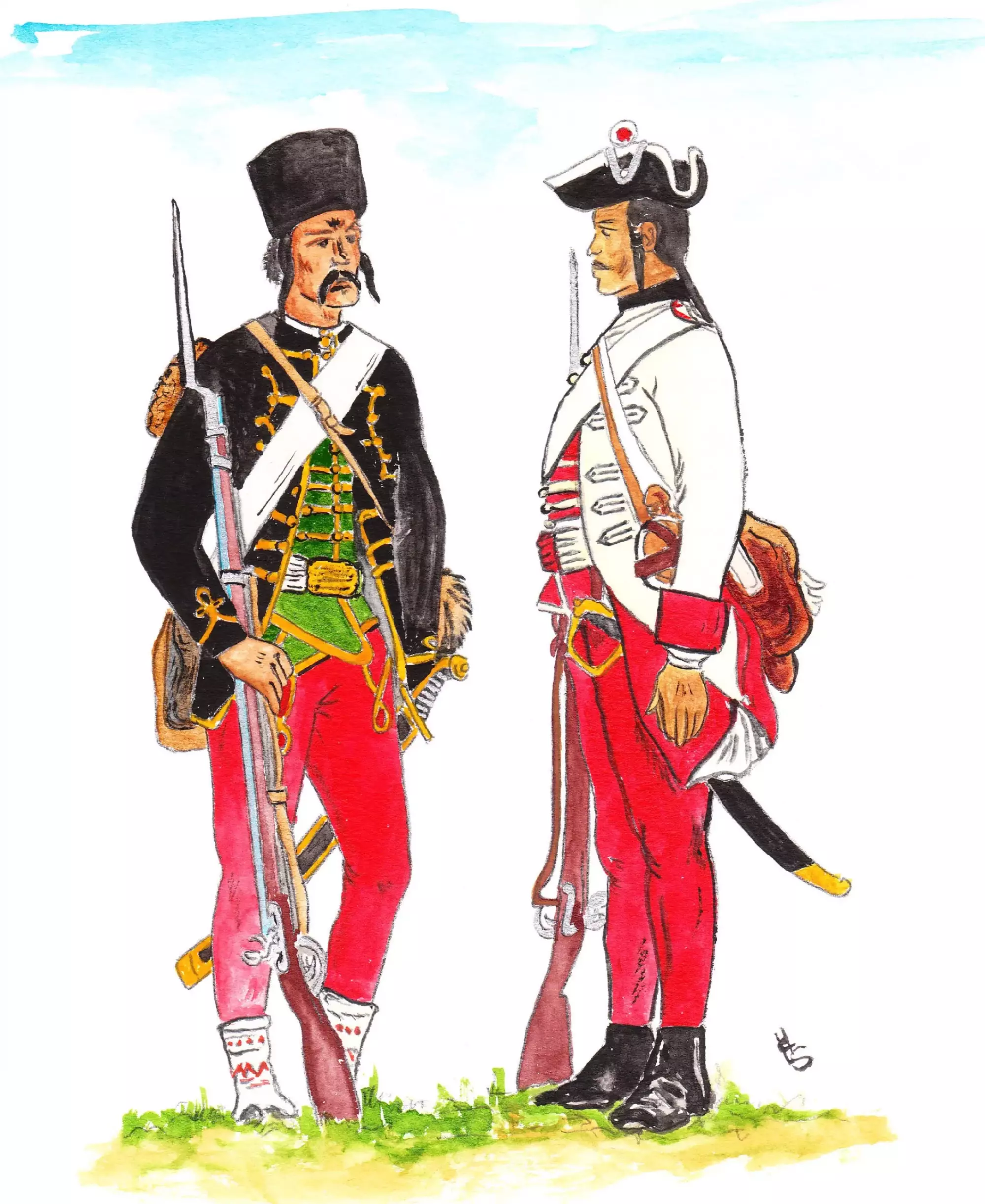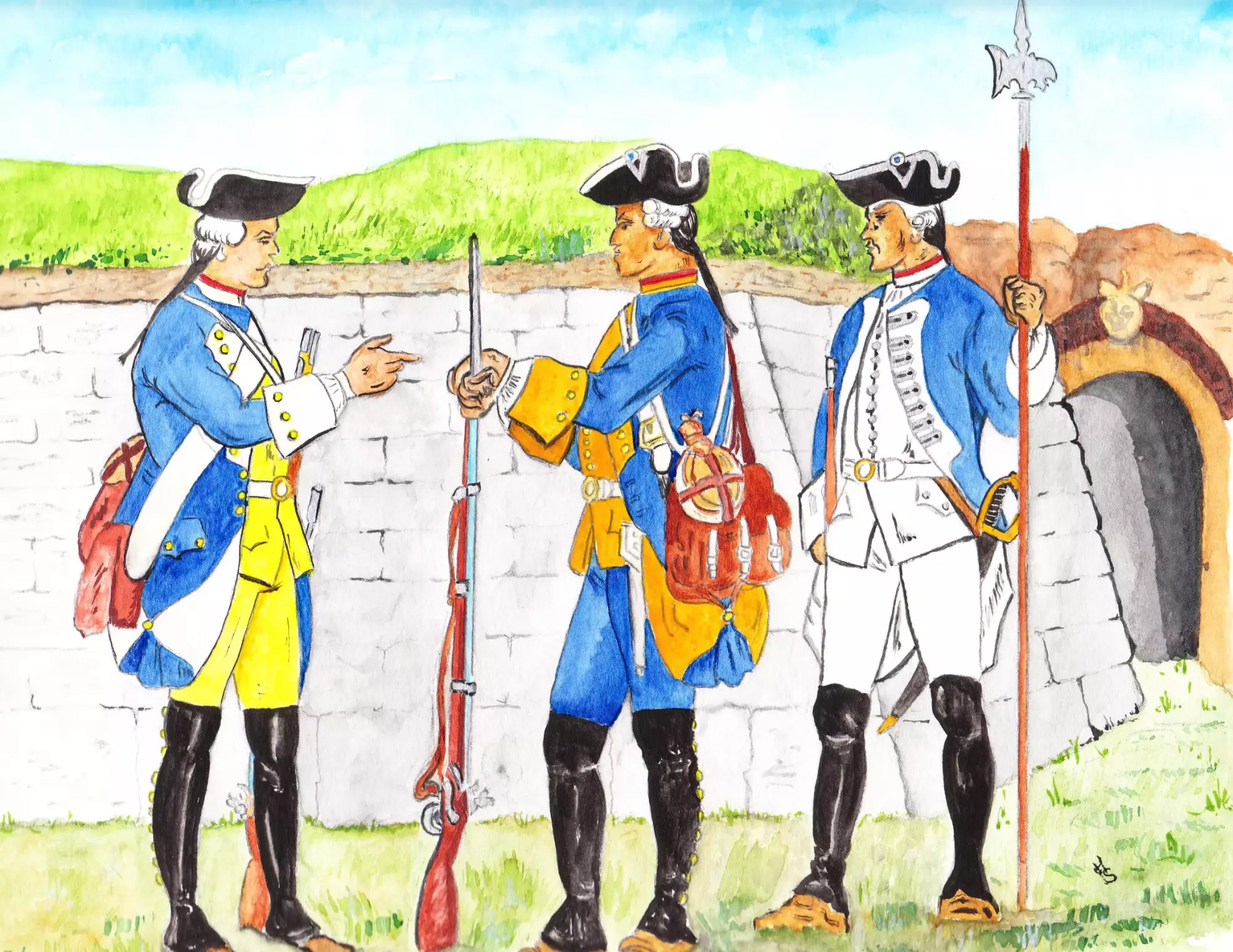 S výstrojí a výzbrojí vojáků podílejících se na válečných událostech roku 1758 seznamují kresby německého historika Haralda Skaly, mj. spoluautora internetových stránek Kronoskaf věnovaných sedmileté válce (http://www.kronoskaf.com/syw/index.php?title=Main_Page).