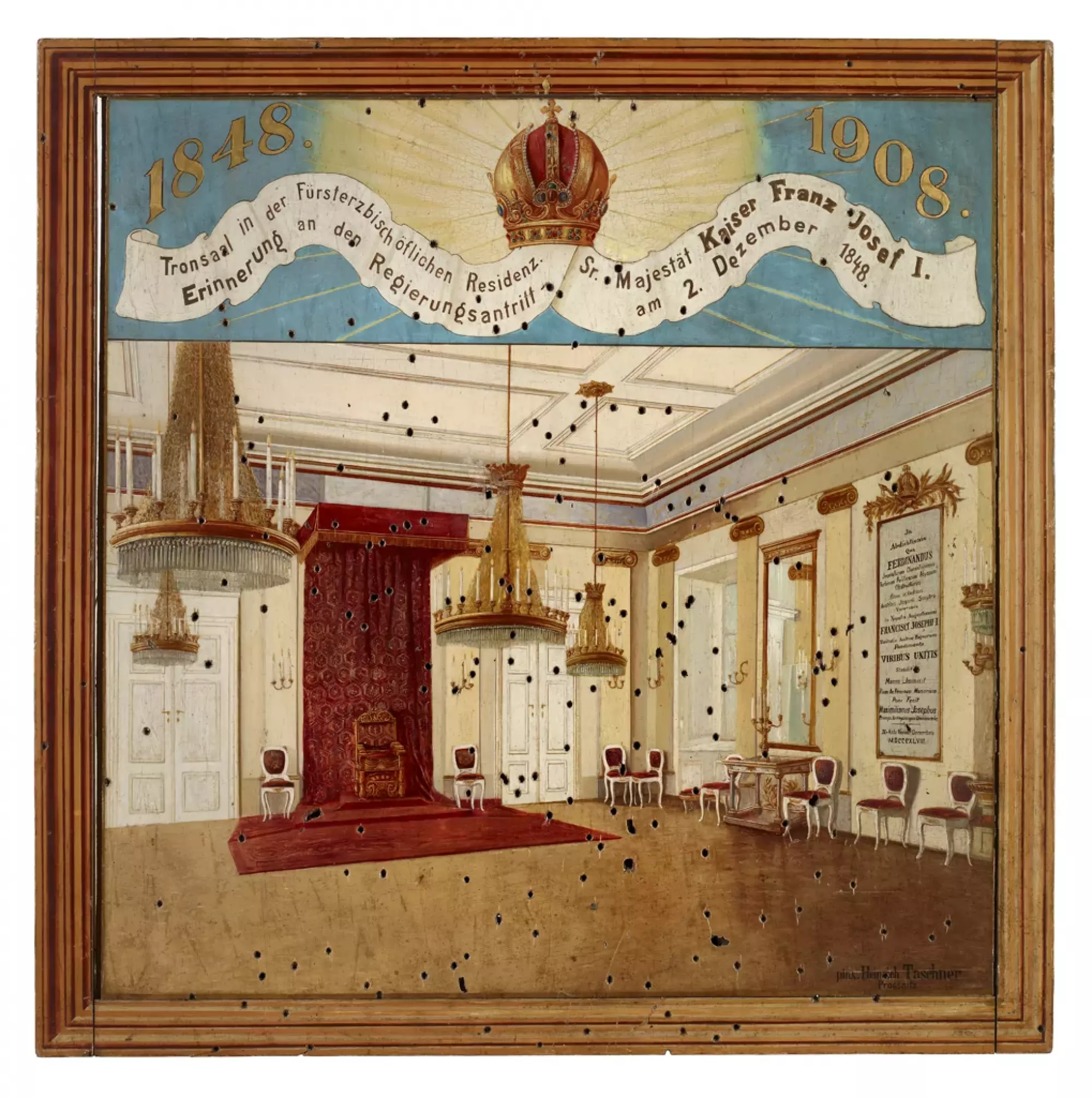 Krátce po osmé hodině přivedl generální adjutant kníže Lobkovic do sálu ještě vrchního dvorního maršálka Friedricha Egona lankraběte Fürstenberga a vrchní hofmistryni Terezii lantkraběnku Fürstenbergovou, kteří právě dorazili do Olomouce, a poté císaře a císařovnu, arcivévodu Františka Karla, arcivévodkyni Sofii a arcivévodu Františka. Sofie zářila v plné kráse; ve svém deníku popsala, co si toho rána, jež mělo splnit veškeré její tužby, oblékla: „Šaty z bílého moáru; účes blond, ozdoba růžová a bílá; náhrdelník a náušnice s tyrkysy a diamanty, které mi můj manžel daroval v souvislosti s narozením milého Franciho; brož z tyrkysů a diamantů na horním díle šatů; indická červená a zlatá šerpa.“