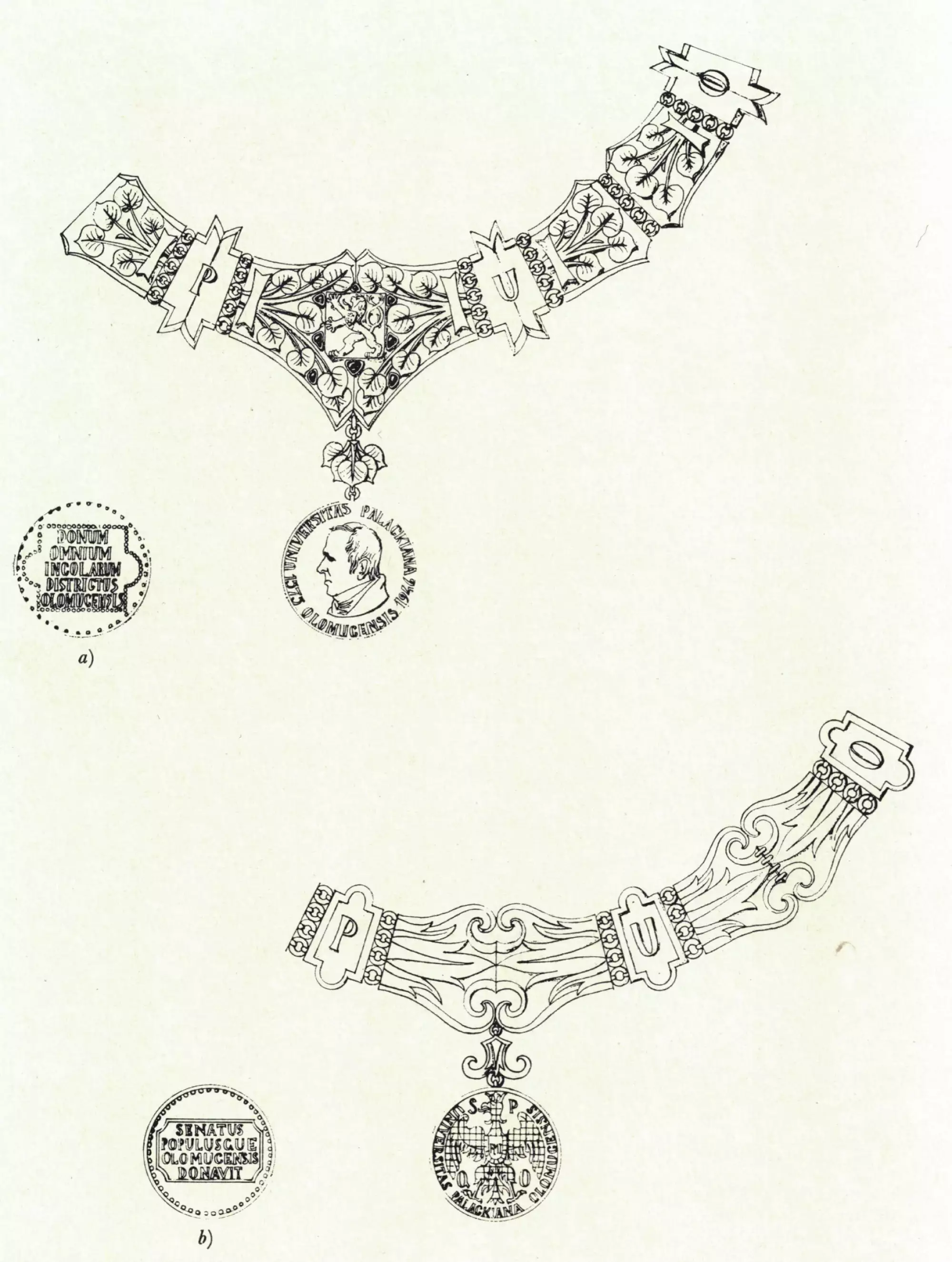 Záměr slavnostně otevřít Univerzitu Palackého dne 17. listopadu 1946, tedy o Mezinárodním dni studentstva, se nepodařilo realizovat vzhledem k časové náročnosti příprav tohoto aktu. Mimo jiné bylo třeba zhotovit hlavní univerzitní insignie – žezlo a řetěz rektora (veškeré insignie staré olomoucké univerzity s výjimkou žezla a řetězu děkana a řetězu proděkana teologické fakulty byly předány Leopoldo-Františkově univerzitě v Innsbrucku). Na zhotovení nových rektorských insignií byla vypsána veřejná sbírka, organizovaná na základě návrhu šéfredaktora olomoucké pobočky ČTK Františka Hadravy Svazem obcí a měst oblasti olomoucké ve dvanácti politických okresech střední a severní Moravy, mj. též prostřednictvím dobrovolného odevzdání jedné koruny československé při výdeji potravinových lístků. Žezlo podle návrhu Jaroslava Horejce zhotovila firma Jana Mňuka v Mohelnici, řetěz navržený arch. Břetislavem Štormem ze Všenor u Prahy s medailí zobrazující Františka Palackého (autorem medaile byl akademický sochař Vincenc Makovský) byl proveden firmou Karla Ziegelheima v Olomouci. Rektorské insignie byly slavnostně předány Univerzitě Palackého zástupci ONV Olomouc-venkov a Ústředního národního výboru města Olomouce v neděli 17. listopadu 1946 v sále Reduty, přičemž prvně zazněly slavnostní fanfáry zkomponované Jaroslavem Kvapilem z Brna a znělka od prostějovského skladatele Vladimíra Ambroze. Prorektorský řetěz byl zhotoven až v roce 1948, prorektor a děkan CMTF UP prof. ThDr. František Cinek byl tedy zřejmě během slavnostního otevření UP instalován ministrem školství a osvěty do prorektorské funkce zavěšením děkanského řetězu CMFT UP. Standartu Univerzity Palackého, provedenou podle návrhu arch. Břetislava Schorma vyšívačkou M. Nedomovou z Olomouce, daroval Univerzitě Palackého 5. prosince 1946 Svaz vysokoškolského studentstva (jako první nosič standarty UP, dekorovaný šerpou v barvách standarty, účinkoval medik Miroslav Vykydal). Olomouckým krejčím Josefem Šarapatkou bylo ušito 10 talárů (pro rektora, prorektora, čtyři děkany a čtyři pedely) podle návrhu arch Josefa A. Šálka z Brna. Jako datum oficiálního otevření obnovené olomoucké univerzity byl stanoven den 21. únor 1947, tj. výročí přijetí příslušného zákona. Průběh slavnostního dne je již na www stránkách Z olomouckých archivů popsán v rámci návštěv prezidenta ČSR Edvarda Beneše v Olomouci (https://archivy.olomouc.eu/archivy/detail-archivalie/20926), zde doplňujeme obrazovou dokumentaci a vylíčení této mimořádné události z pera ředitele Archivu UP Pavla Urbáška; zpřístupňujeme rovněž dobový filmový dokument Palackého odkaz a amatérské filmové záběry z prvních olomouckých majáles v květnu roku 1947: