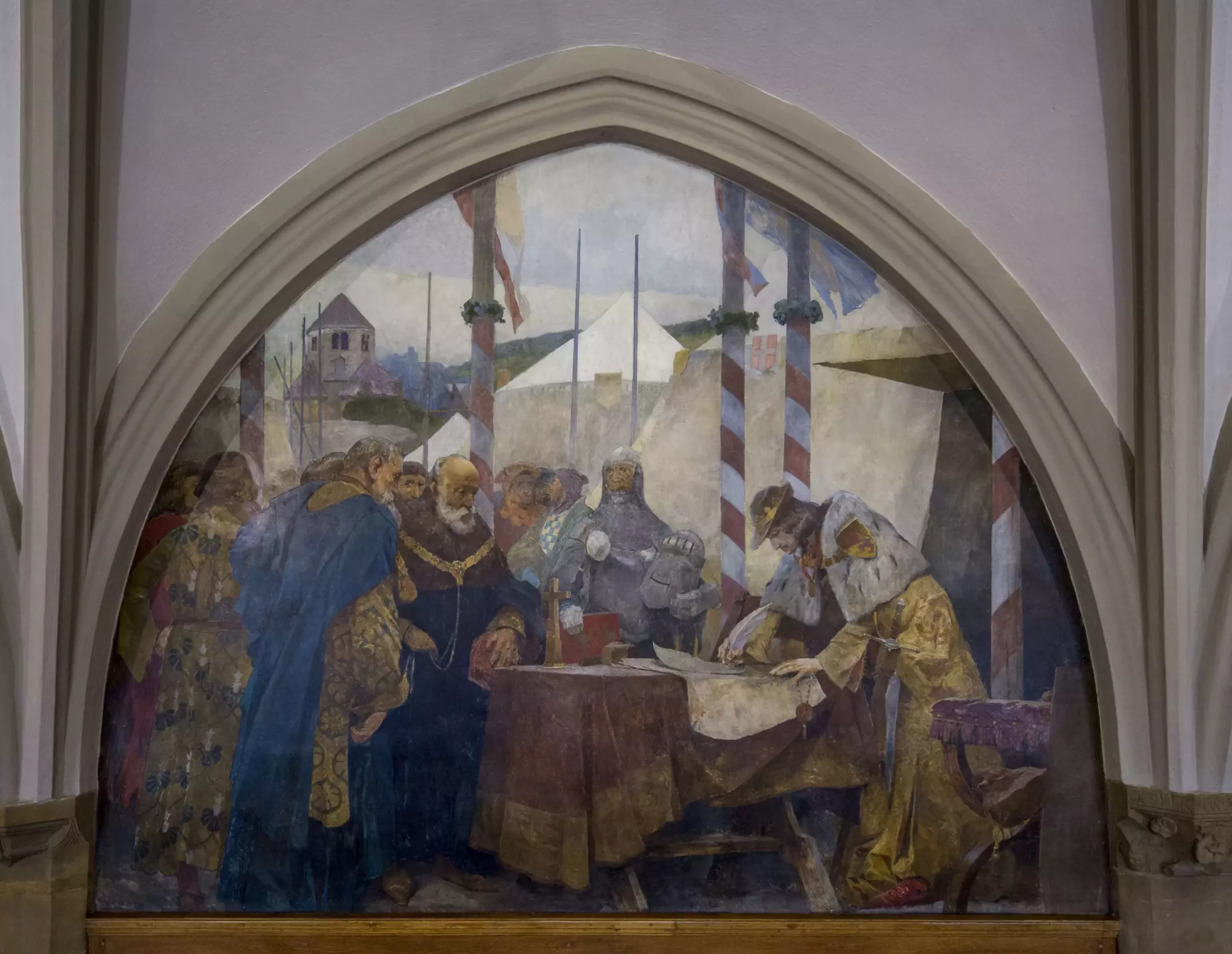 Malba ve třetím meziklenebním poli jižní stěny slavnostního sálu (obřadní síně) v 1. patře severního traktu olomoucké radnice, 1904.