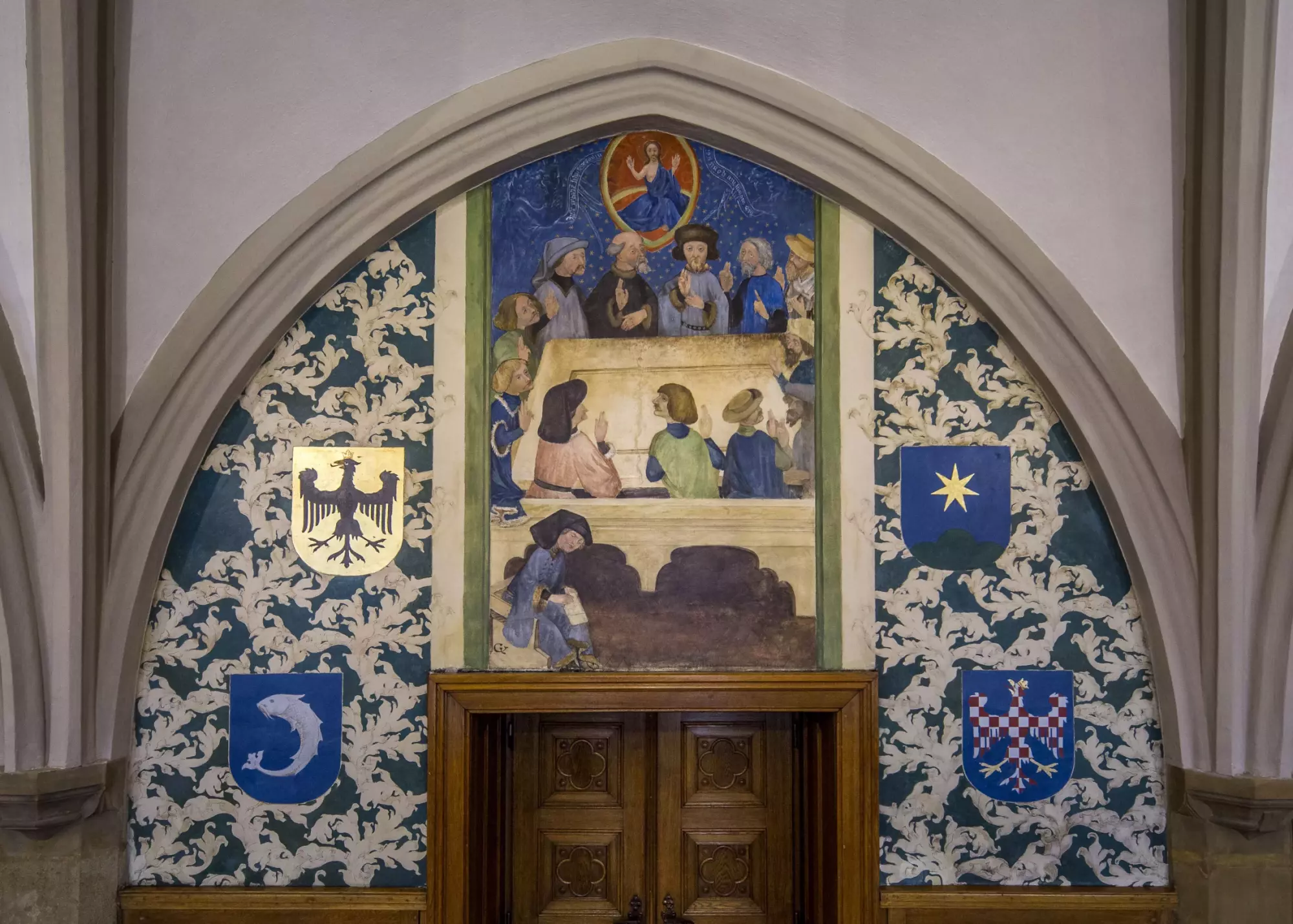 Malba ve druhém meziklenebním poli jižní stěny slavnostního sálu (obřadní síně) v 1. patře severního traktu olomoucké radnice, 1904.