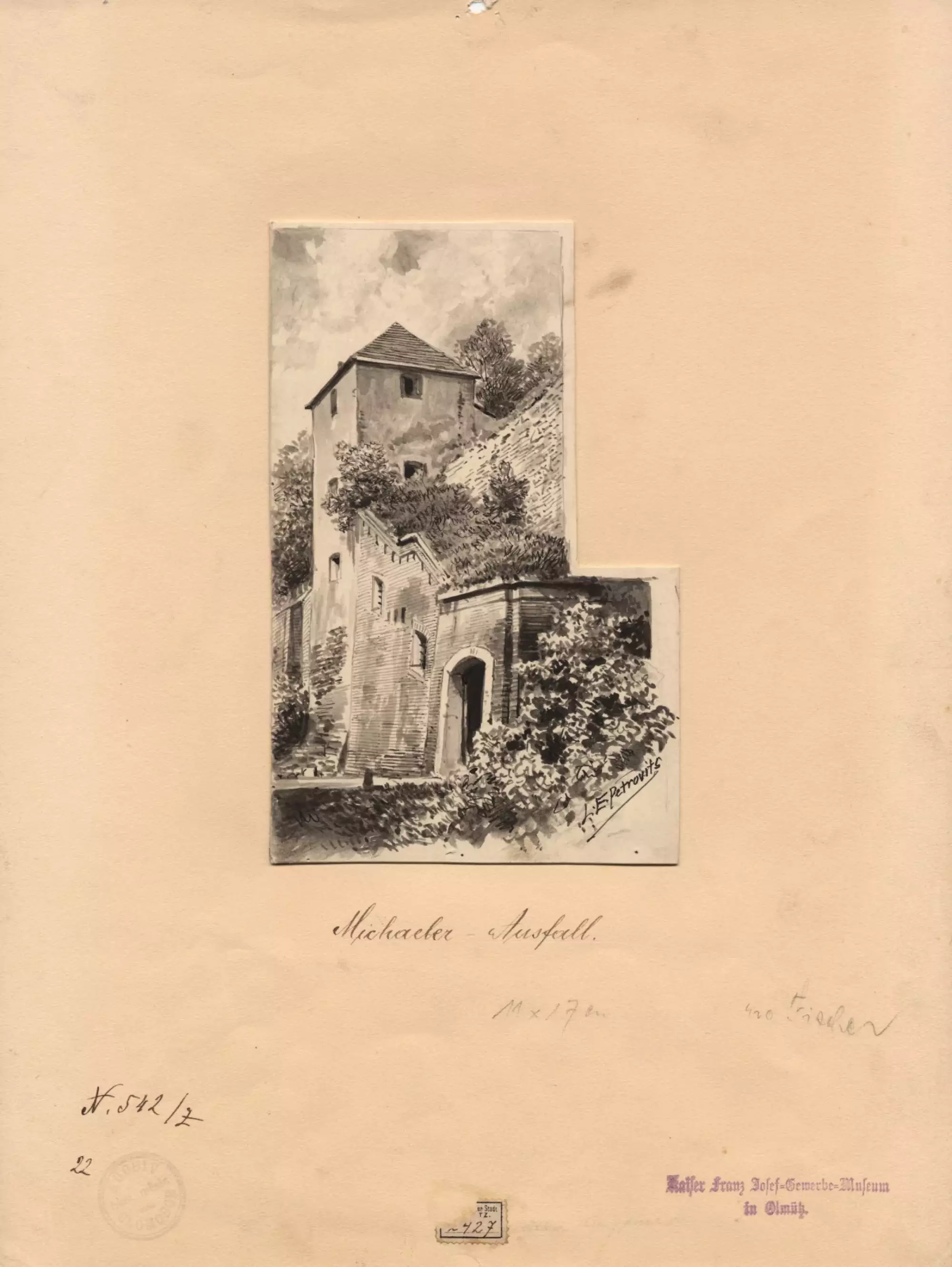 Ladislav Eugen Petrovits (1839–1907): Michalský výpad. Lavírovaná kresba z roku 1894. Státní okresní archiv v Olomouci, Archiv města Olomouce, fond M 8-34, inv. č. 251.